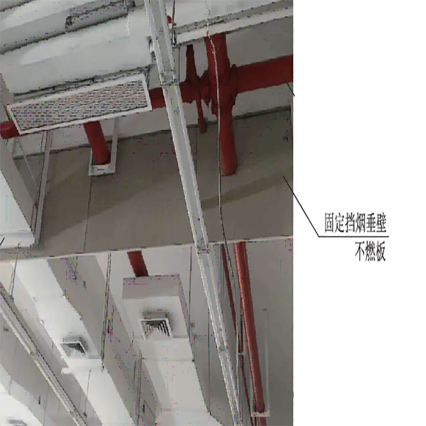 3. 《擋煙垂壁》512條:材料:5~不燃材料+金屬板材≮0.8mm熔點≮700+不燃無機復(fù)合板≮10mm+無機纖維織物拉力600N300N+防火玻璃。